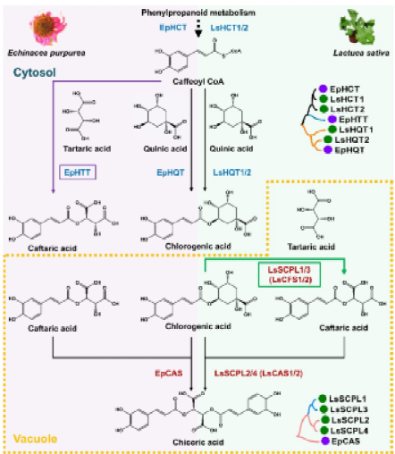 菊苣酸(Chicoric acid)是一种具有抗氧化、抗炎、抗病毒及免疫调节活性的天然次生代谢产物,其在包...