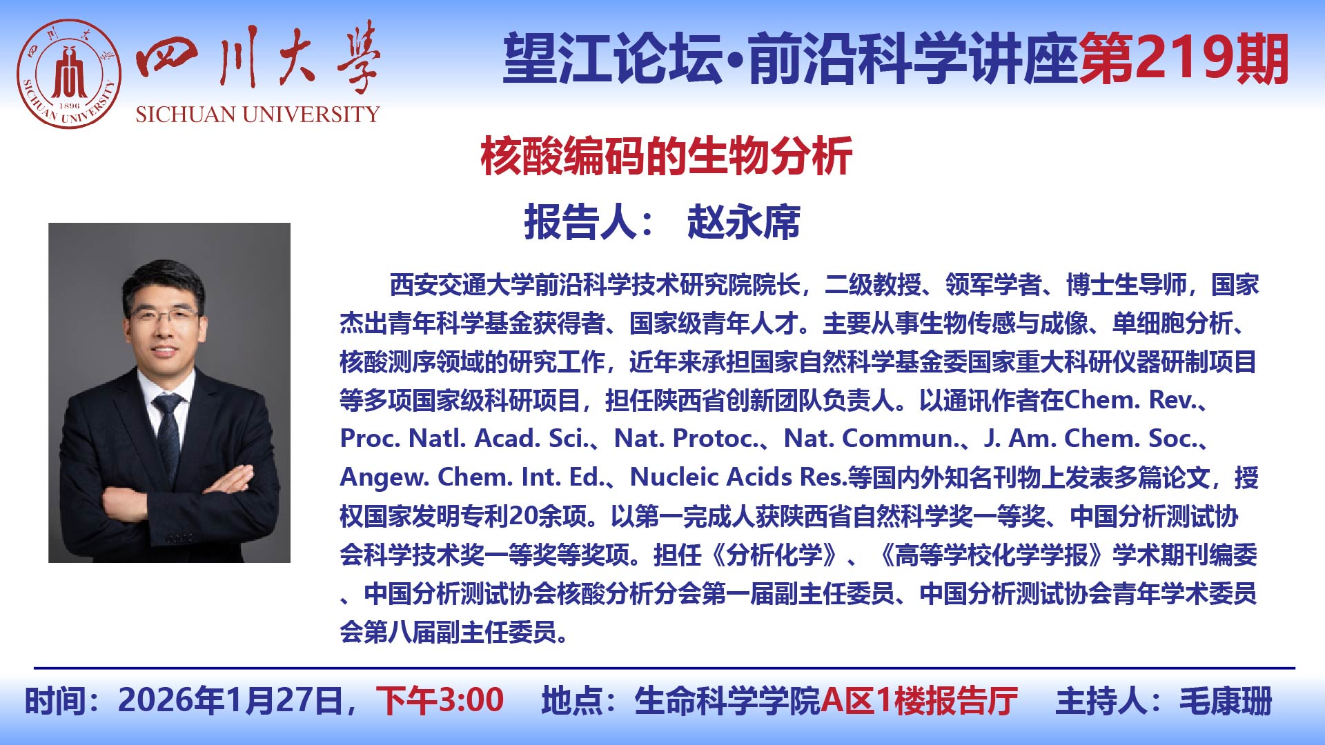 望江论坛-前沿科学讲座(第219期):赵永席教授1月27日学术讲座