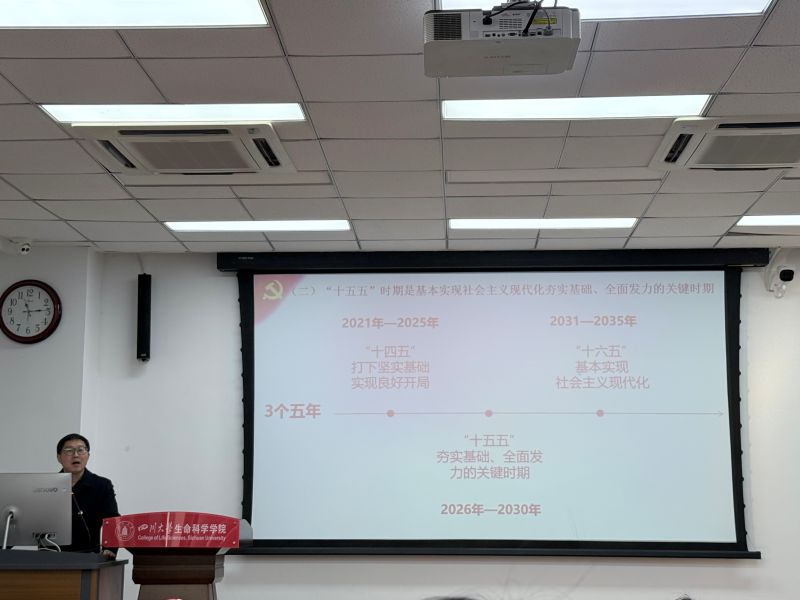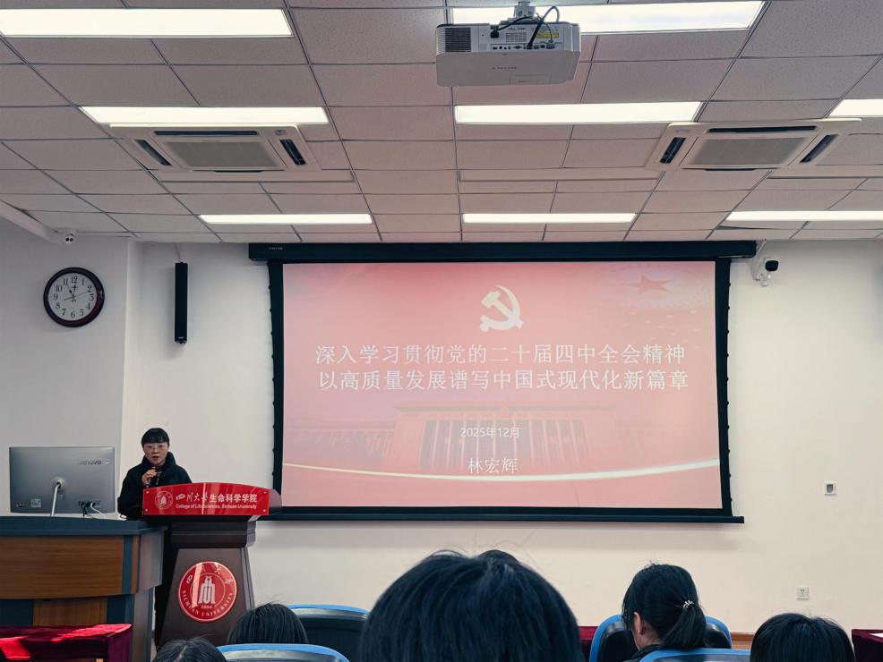 2025年12月10日,生命科学学院党委书记林宏辉教授在A101学术报告厅为学院新发展党员及入党积极分子开展了题为《深入学习贯彻党的二十届四中全会精神,以高质量发展谱写中国式现代化新篇章》的专题党课。