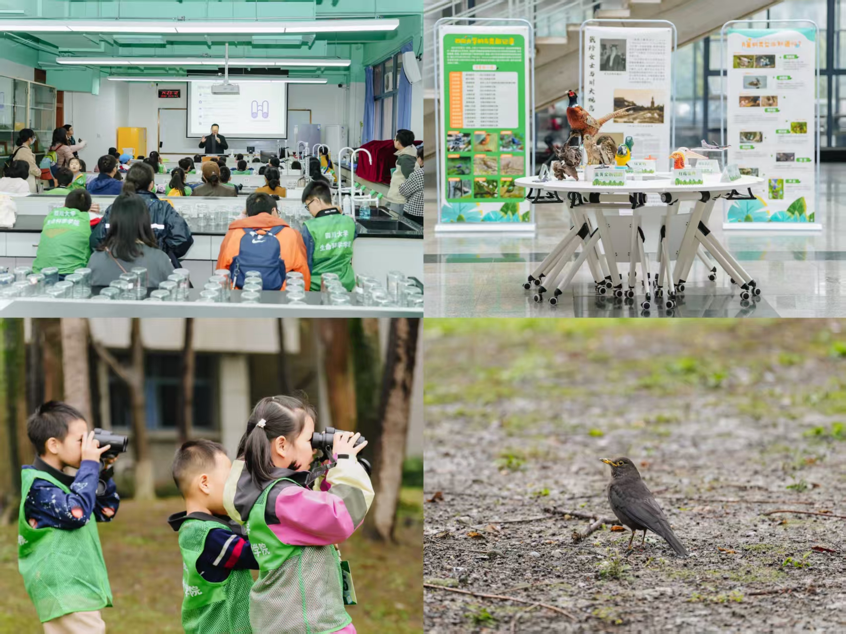 2026年3月29日,在国际爱鸟周前夕,四川大学生命科学学院分工会联合四川大学自然博物馆、四川大学生态协会和生物科学国家级实验教学示范中心,于江安校区顺利开展第六期亲子观鸟与自然教育活动。全校60余个教职工亲子家庭环绕明远湖,在淅淅沥沥的小雨中,开启了一场与飞羽生灵相遇的春日自然之旅。