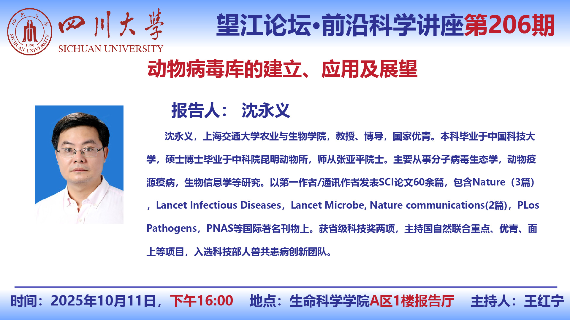 望江论坛-前沿科学讲座(第206期):沈永义教授10月11日学术讲座